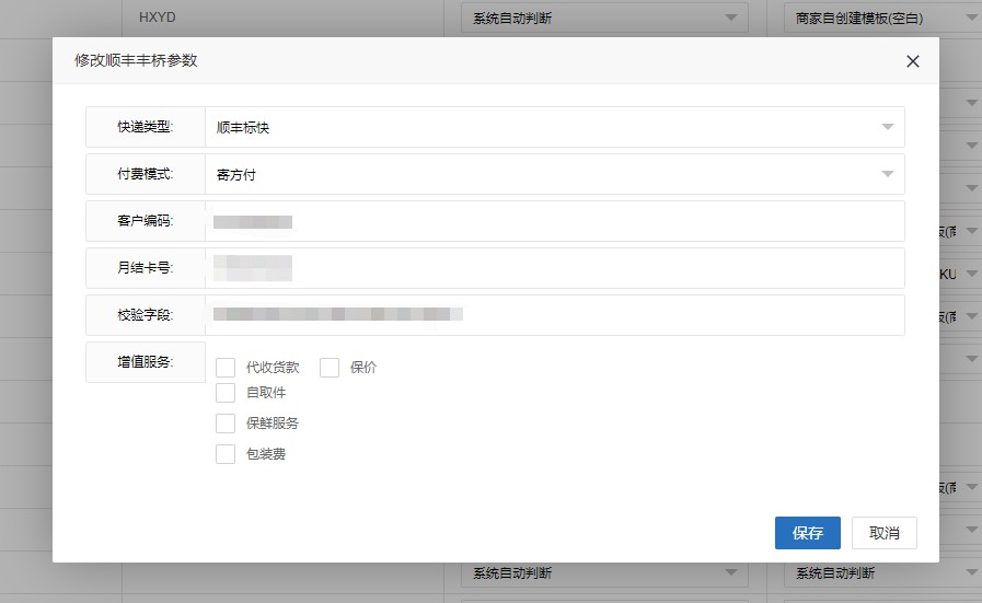 点击之后,会弹出内容填写框,选择您的发货面单信息,最后填写刚才申请的效验码、顾客编码