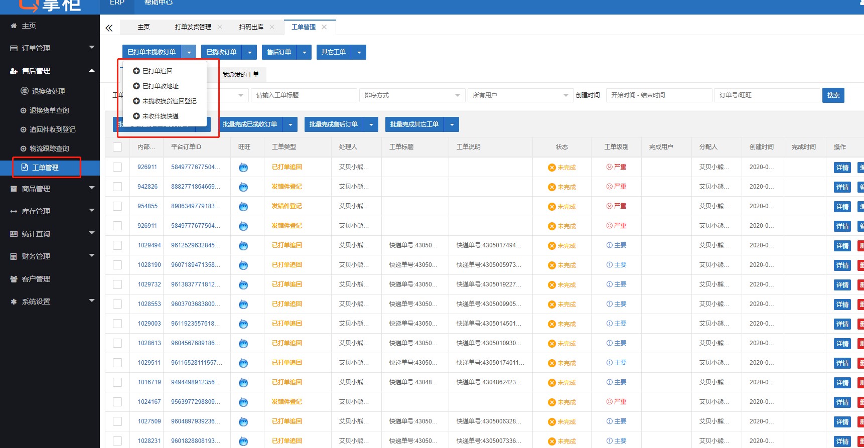 一. 登记相应的工单,比如改地址工单,换快递工单,改商品工单
