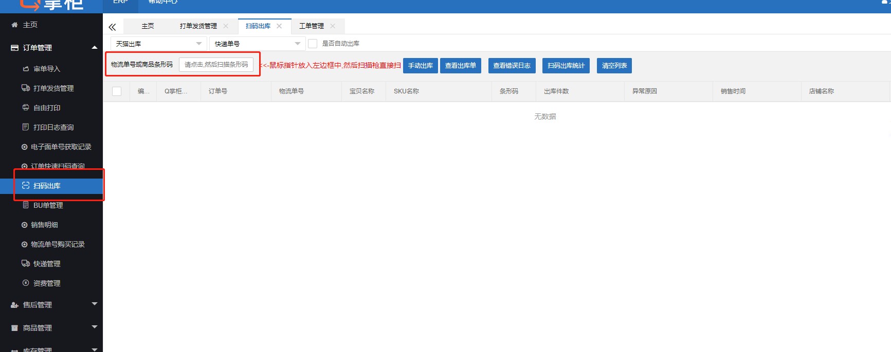 二. 快递包裹打包完毕后,进行扫码出库操作,所有的问题件会在扫码出库时自动提示
